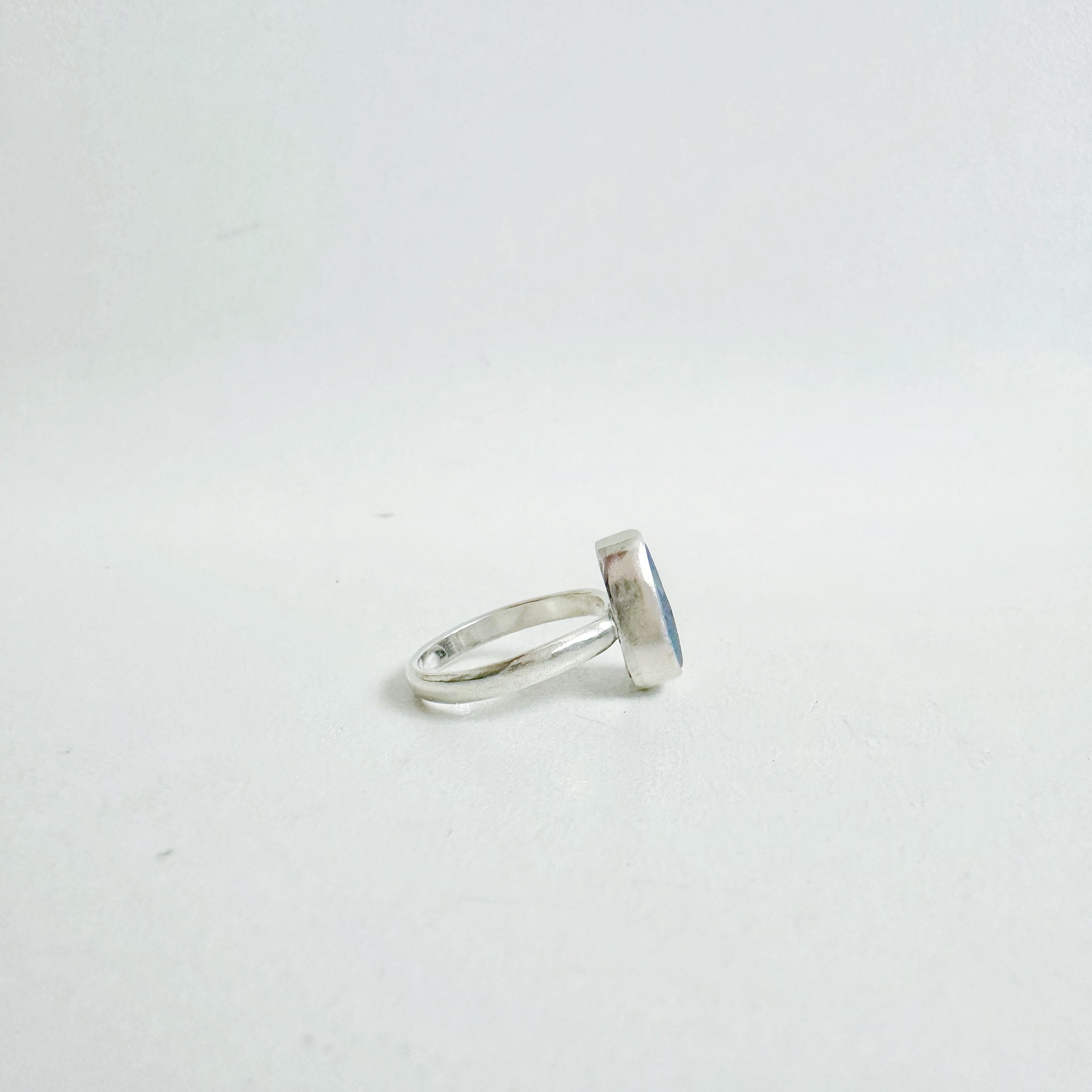 Set in a clean, minimalist bezel on a sturdy sterling band, this ring has a modern coastal feel while keeping all the organic charm of the sea. Its dreamy blue hue shifts beautifully in the light—soft, calming, and effortlessly wearable.